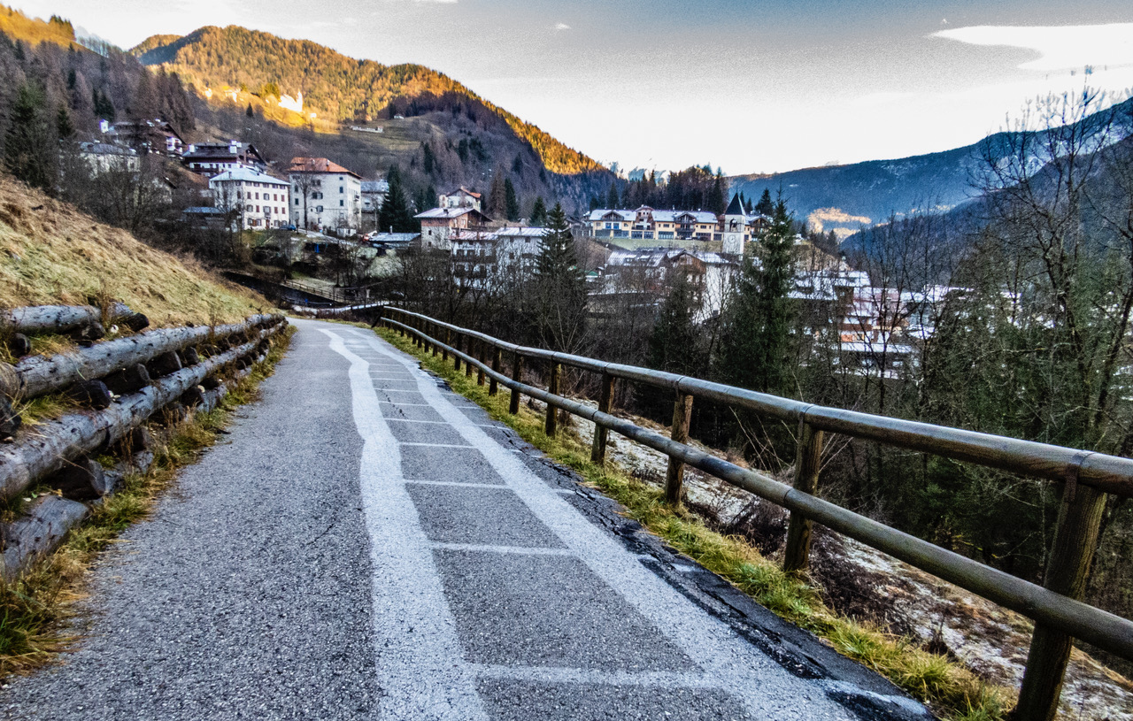 في الواقع، إزاء انقلاب كانون الأوّل (ديسمبر) الشمسي، ترك قوس الشمس المُنخفض والمُتّسق عبر سماء نصف الكرة الشماليّ، مُضافاً إليه درجات حرارة السطح المُنخفضة، بصمةً ملحوظةً على هذا الطريق المُؤدّي إلى بلدة "پيايو" الجبليّة في شمال إيطاليا. ذاب صقيع الصباح على الطريق فقط حيث تمكّن ضوء الشمس من الوصول إلى الأرض. لكنّه بقي في المناطق المُظلّلة باستمرار بفعل السياج، واشماً في الصقيع صورةً للسياج على سطح الأسفلت.