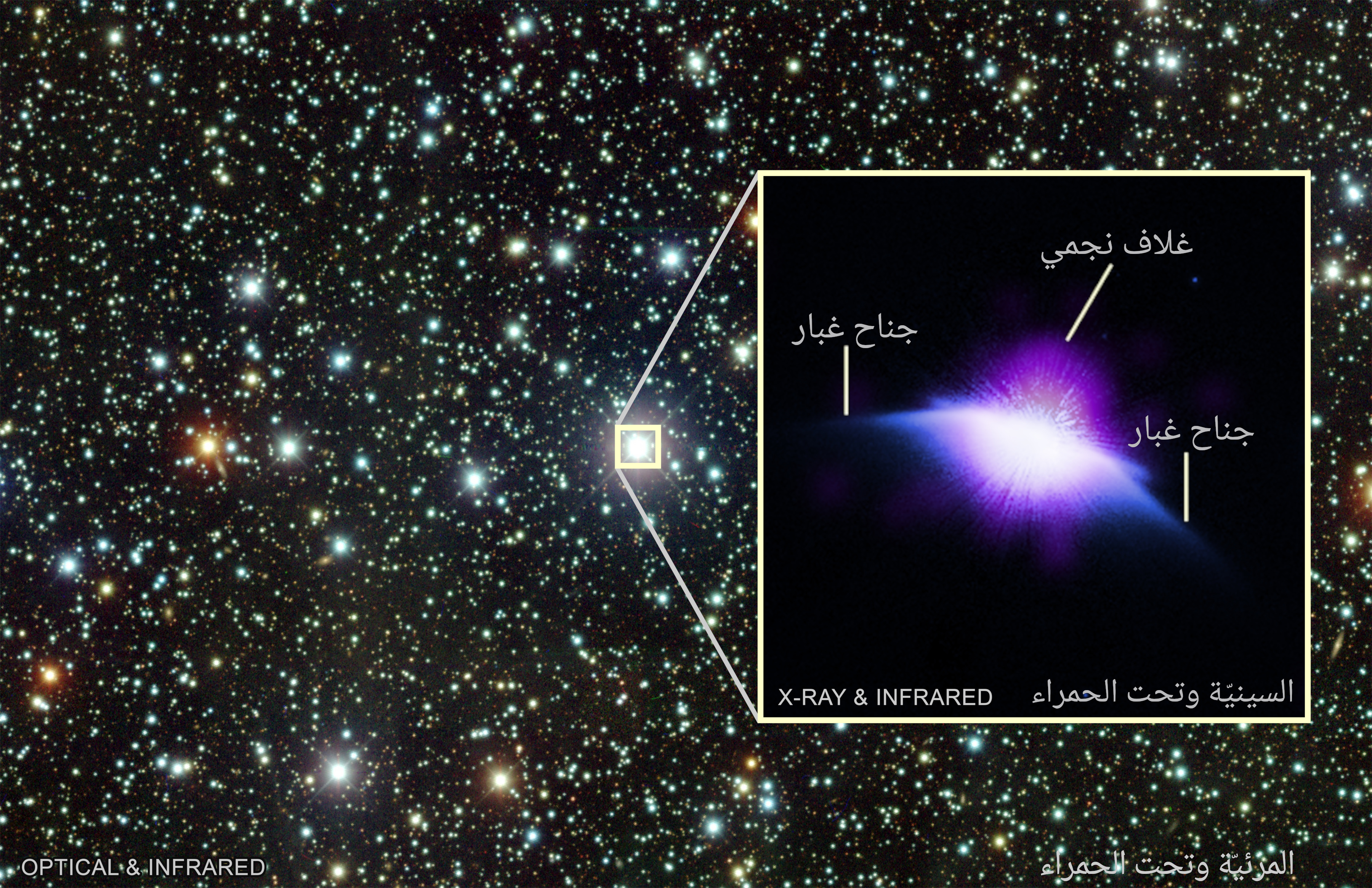 [النجم] أصغر سنّاً بكثير من الشمس، إذ يبلغ عمره حوالي 100 مليون عاماً فحسب، وينفخ رياحاً نجميّة سريعة وكثيفة تدفع الغاز والغبار الأبرد المُحيطَين به، مُشكّلاً فقاعةً تُسمّى غلافاً نجميّاً. كُشِفَت الفقاعة التي نفخها النجم بواسطة مرصد تشاندرا للأشعّة السينيّة، ويبلغ قطرها حوالي 200 ضعف المسافة بين الأرض والشمس. لشمسنا فقاعتها أيضاً، وتُسمّى الغلاف الشمسيّ، والذي يحمي الكواكب من الإشعاع الكونيّ.